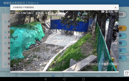 朝阳区防汛工作台1.0"iPad端实时感知水文模块,国内首例嵌入式AI视频摄像机水文AI识别测水位、流量、流速,搭载私有hls流服务器和Javaweb技术播放视频。供局领导查看河道水文信息并可观看现场视频。